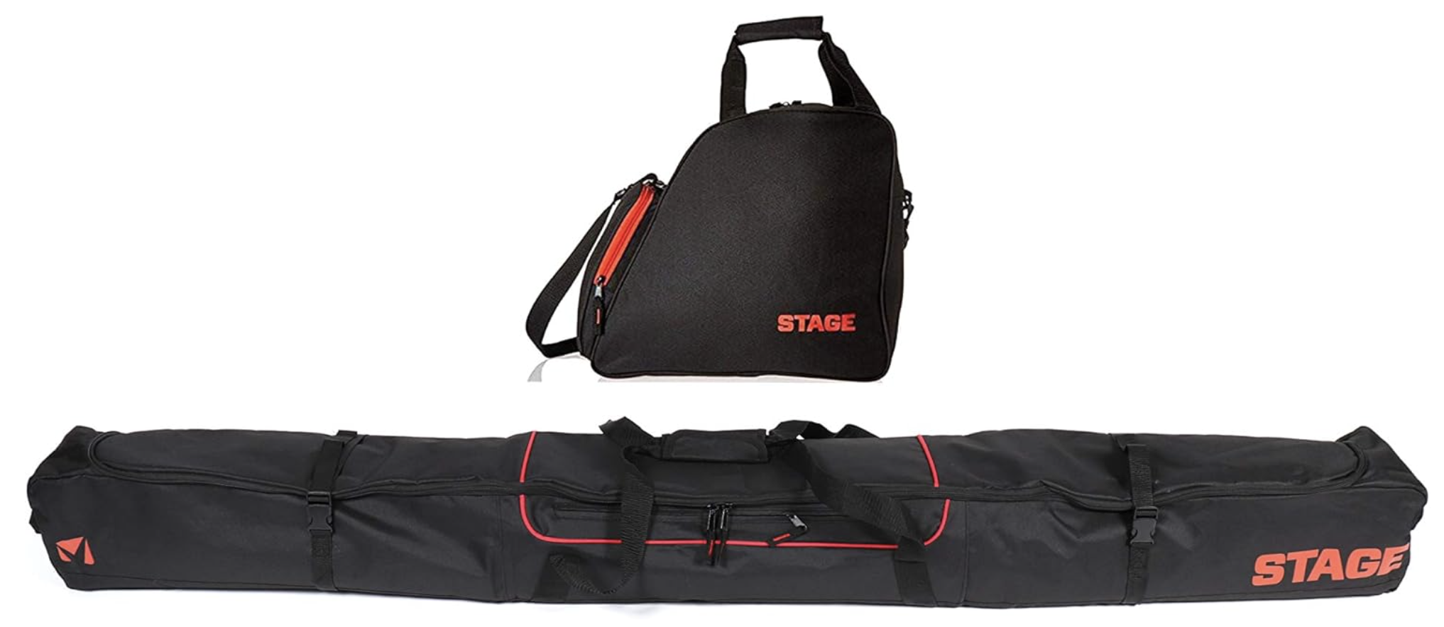 Stage Basic Ski Boot Bag: main compartment for boots, helmet, and accessories. 600D polyester fabric. Padded backpack straps and carry handle.