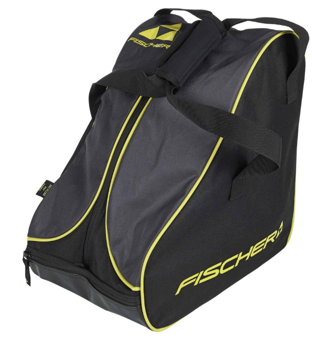 Fischer Alpine Race Boot Pack: large main compartment for boots, front pocket for accessories. Air holes for breathability. Durable and water-resistant fabric. Padded shoulder straps and carry handle.